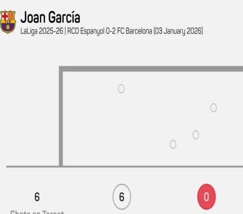 西甲第18轮,巴塞罗那客场2-0击败西班牙人,霍安-加西亚完成6次扑救,成为自2023年11月以来,首位在西甲零封比赛中6...