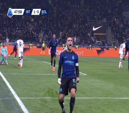 意甲第18轮主场迎战博洛尼亚的比赛中,劳塔罗-马丁内斯的进球帮助国际米兰取得2-0的领先。本场比赛的这个进球...