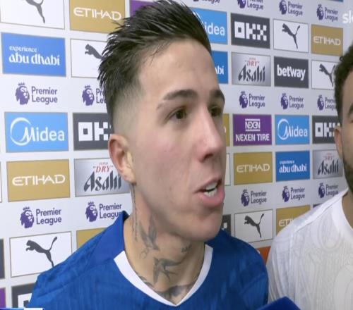 英超第20轮,切尔西客场1-1战平曼城,赛后,此役打入绝平进球的切尔西中场恩佐接受了天空体育的采访。谈这一周对...
