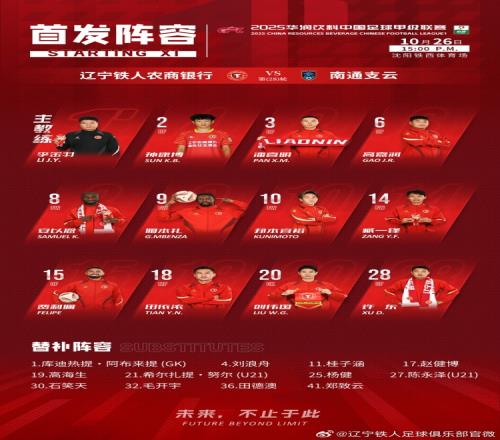 辽宁铁人与南通支云的首发阵容揭晓姆本扎与邦本宜裕领衔陈彬彬将率先出场_中超直播