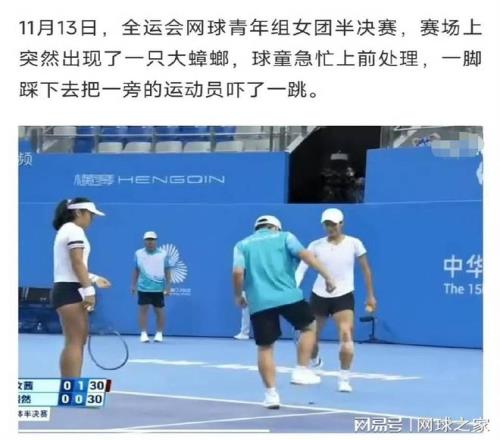 没想到啊!全运会网球项目开赛后,第一个上热搜的全民段子,不是全运会首金的诞生,也不是很多网友热议的“学长学姐返乡支教”流行热梗,而是赛场内突然出现的一只小昆虫。
