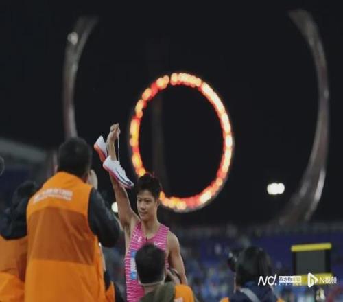 苏炳添表示:“能够坚持到今天,在我的家乡跟大家说一句再见,我感到非常荣幸。今天看整个体育场都是高朋满座的,谢谢你们的到来!”