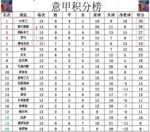 积分榜方面,那不勒斯击败罗马后,追上AC米兰,由于少了一个净胜球,那不勒斯就只能屈居第2。罗马就在榜首呆了一周,今天输球后,被国米追上,净胜球劣势的他们也就从上周的榜首一下跌到了第4,而且如果明天博洛尼亚赢球的话,他们排名还将继续下滑。意甲目前榜首的竞争比西甲还激烈,现在是4队分差就在1分之间。
