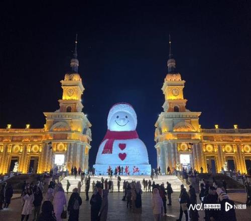 位于哈尔滨音乐长廊的网红雪人。