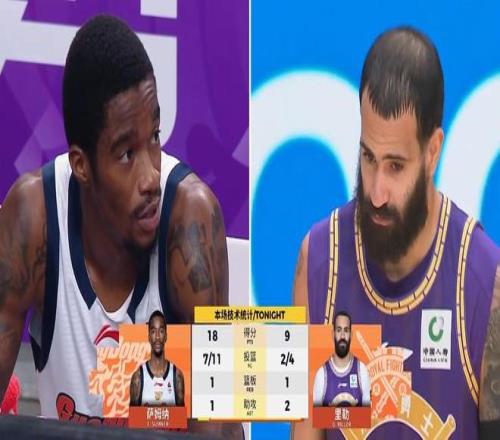 半场战罢,在罚球8-21,三分命中数4-7被北控碾压的情况下,广东依靠萨姆纳萨林杰胡明轩三人合砍的41分(萨林杰半场打满),46-46战平北控。