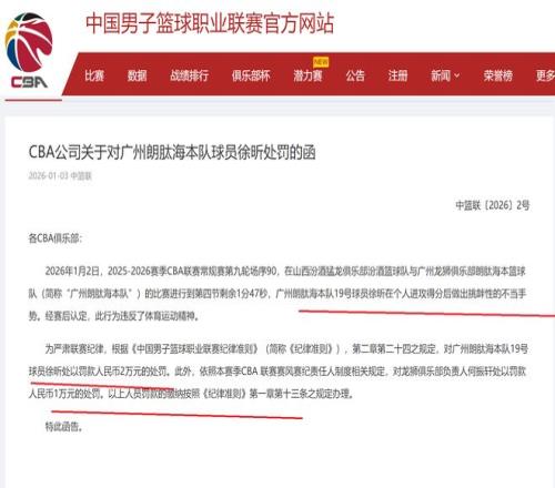 深夜11点半!CBA公司给徐昕开出了一份大罚单