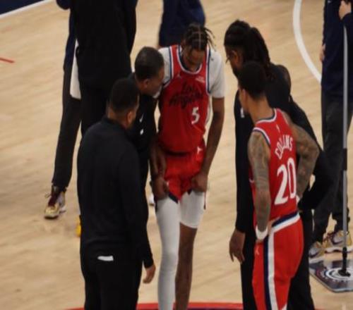 在比赛期间,刚刚伤愈复出不久的快船前锋小德里克-琼斯在一次球权拼抢中与绿军后卫佩顿-普里查德纠缠在了一起,随后他被后者从侧面压到了右腿外侧导致受伤。值得一提的是,小琼斯之前受伤就是因为在本赛季11月首次与绿军交手时受伤的,当时他被杰伦-布朗压到腿部导致受伤。