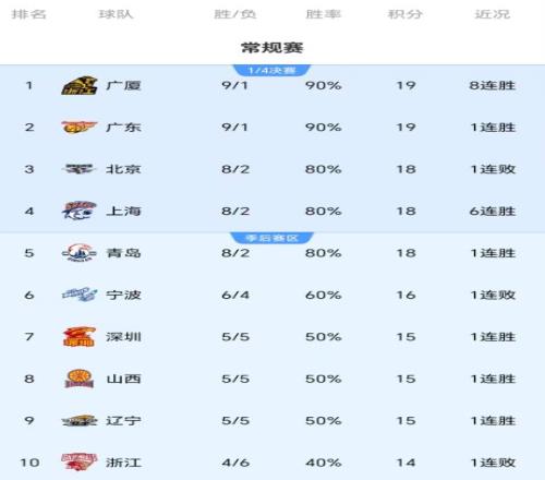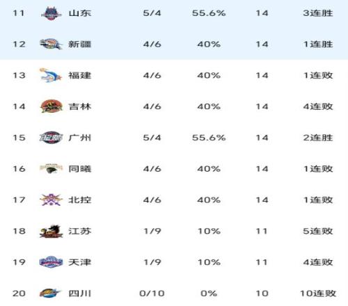 随着山东翻盘,新疆逆转,辽宁山西结束4连败,CBA最新积分榜出炉