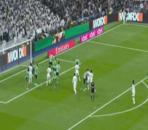 罗德里戈角球传中,落点恰到好处,劳尔-阿森西奥头槌破门,直挂球门右上角,3-0!