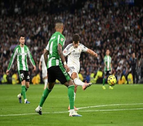 皇马目前排在西甲积分榜第2,而皇家贝蒂斯则是第6。姆巴佩、阿诺德、赫伊森和米利唐伤缺,卜拉欣-迪亚斯离队参加非洲杯,皇马本场摆出442阵型,威尼修斯和贡萨洛-加西亚搭档双箭头,贝林厄姆、楚阿梅尼、卡马文加和罗德里戈形成四中场,巴尔韦德继续客串右后卫。