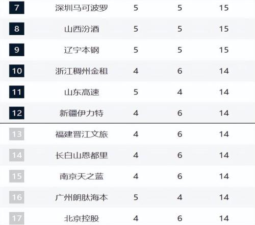 深圳、山西和辽宁排在7-9都是5胜。深圳这轮击败浙江,让对手止住连胜。山西这轮击败江苏,勉强止住颓势。辽宁击败吉林,也是止住连败。不过他们后续的压力都非常大,看看能不能调整过来吧。