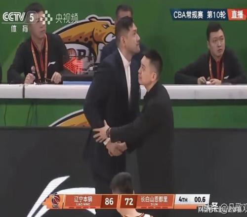 86-72,当比赛曲终哨响,杨鸣径直走向中场,与迎面走来的吉林主帅钟诚握手,两人没有语言交流,钟诚表情淡定,杨鸣则下意识的,拍了拍钟诚的手臂……