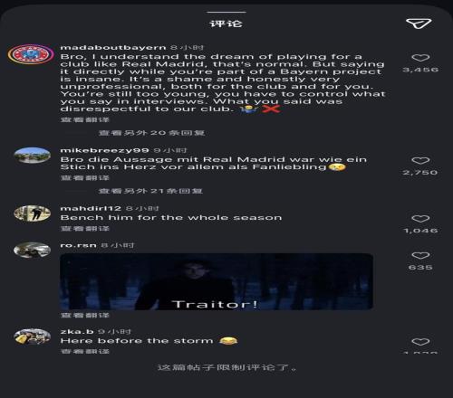 “兄弟,我理解你为皇马这样的俱乐部效力的梦想,这很正常。但身处拜仁时直接说出来就太疯狂了。这很遗憾,说实话非常不职业,对俱乐部和你自己都是如此。你还太年轻,必须控制自己在采访中的言论。你的发言是对俱乐部的不尊重。♂️❌️”