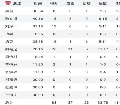 浙江3分绝杀广东!赛后数据一目了然,不是约克,最大功臣是他