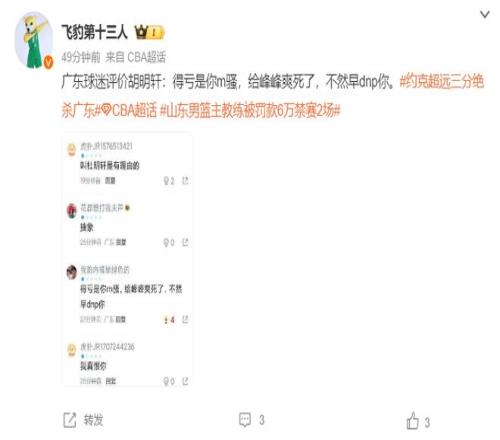 媒体人导演我躺哪:广东球迷这么批判胡明轩就有点过分了,胡明轩在CBA只是找状态,他会把最好的状态留在世预赛。(这冷嘲热讽让人无奈啊)