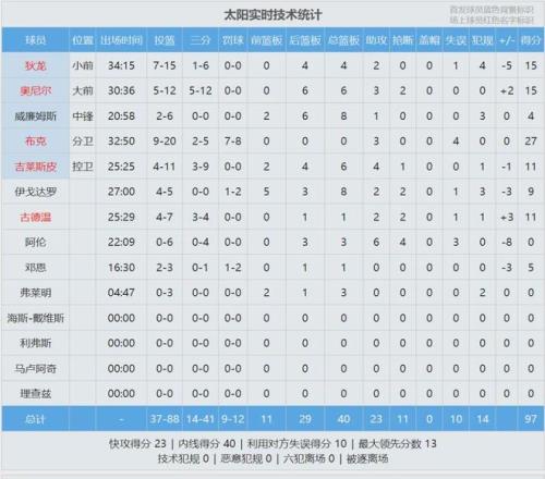 雷霆在第37场比赛吃到赛季第7败,73胜勇士直到第69场才吃到第7败。亚历山大出战29分钟,投篮21中7,三分6中1,罚球6中6,得到21分2篮板6助攻1盖帽2失误,正负值-20!亚历山大连续108场20+,距离张伯伦纪录还差18场。