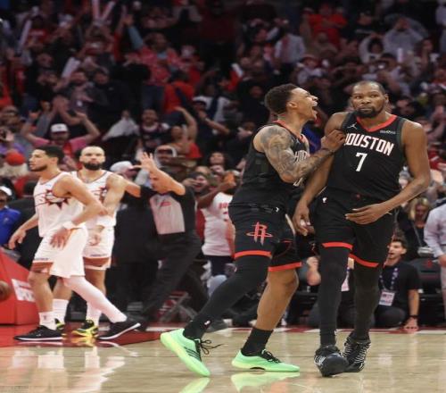 1.1秒三分准绝杀!火箭全场狂欢庆祝,杜兰特霸气挥手说再见