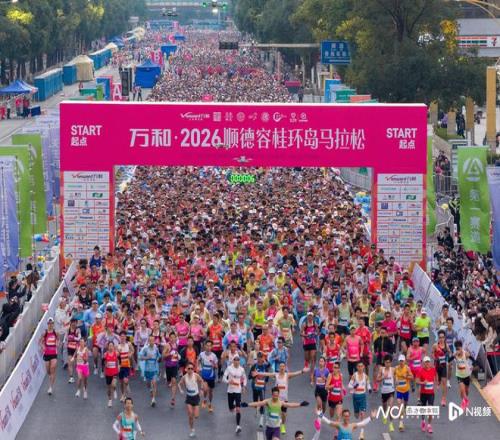 新年首马,粤跑悦顺。2026年1月3日7时,万和·2026顺德容桂环岛马拉松在容桂海骏达城鸣枪起跑。来自全国34个省级行政区的1.8万名跑者,共同用脚步绘就了一幅“体育+”融合发展的生动画卷。