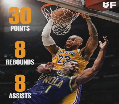 30+8+8!詹姆斯打爆锡安!湖人13胜0负领跑全联盟