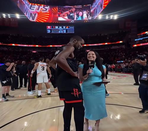 作为火箭主场主持人,瓦妮莎本赛季多次采访火箭主力球员,并且有过不少名场面,例如当时采访范弗利特(单场轰下37分)。