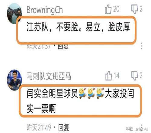 易立率队惨淡的战绩,也被球迷诟病。“江苏队不要脸。易立脸皮厚”;“今年能不能赢下5场”;“易立怎么不会下课的”;“我已经说了很多遍了,江苏有易立在永远不可能崛起”;“易立赶紧下课吧”;“江苏队真的太差了”;“现在的易立成为了新的不倒翁”;“坑爹呀,年年如此”;“没三分球的球队,能赢才怪”;“江苏是教练的问题,还是球员的问题?”……