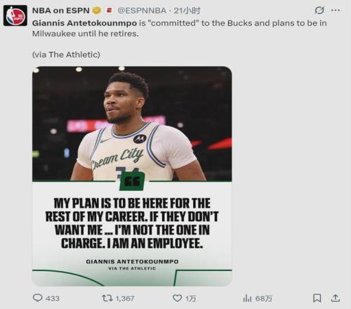 字母哥接受采访时,再次向雄鹿表忠心:“我永远不会提出交易请求,这不是我的性格。我哪里都不去,我对雄鹿全身心投入。我的计划是在雄鹿打到退役,除非雄鹿不想要我了。我无法控制别人说什么,但我自己从未说过要离开。”